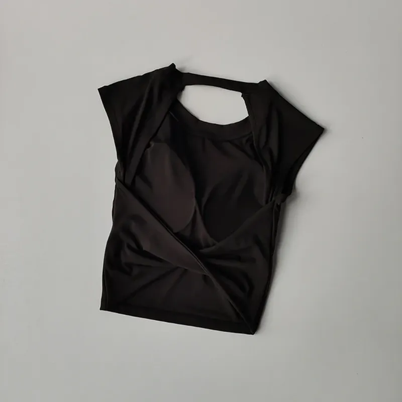Sexy Short Backless Fixed Chest Pad Sports T-shirt Vest Women's Tight Fitting Quick Drying Slimming Yoga Suit Top Clothing