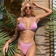 Sexy Split Swimsuit Women Bikini Beach Pink L