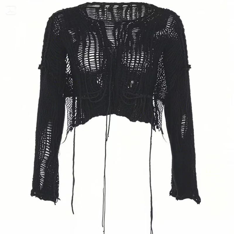 Sexy White Slash Neck Grunge Knitted Women's Sweater Hole Ripped Pullover Crop Top Harajuku Hollow Out Fashion Summer Jumpers