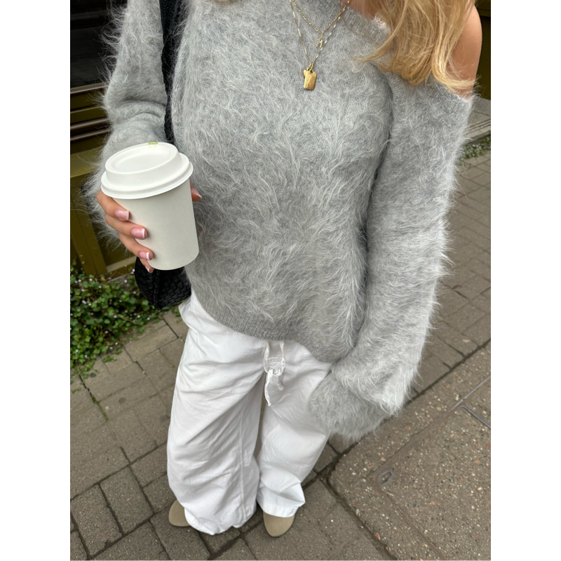 Sexy Women's Knit Solid Mohair Sweater Loose Off Shoulder Long Sleeve Female Pullovers 2025 Autumn Lady Fashion Casual Knitwear