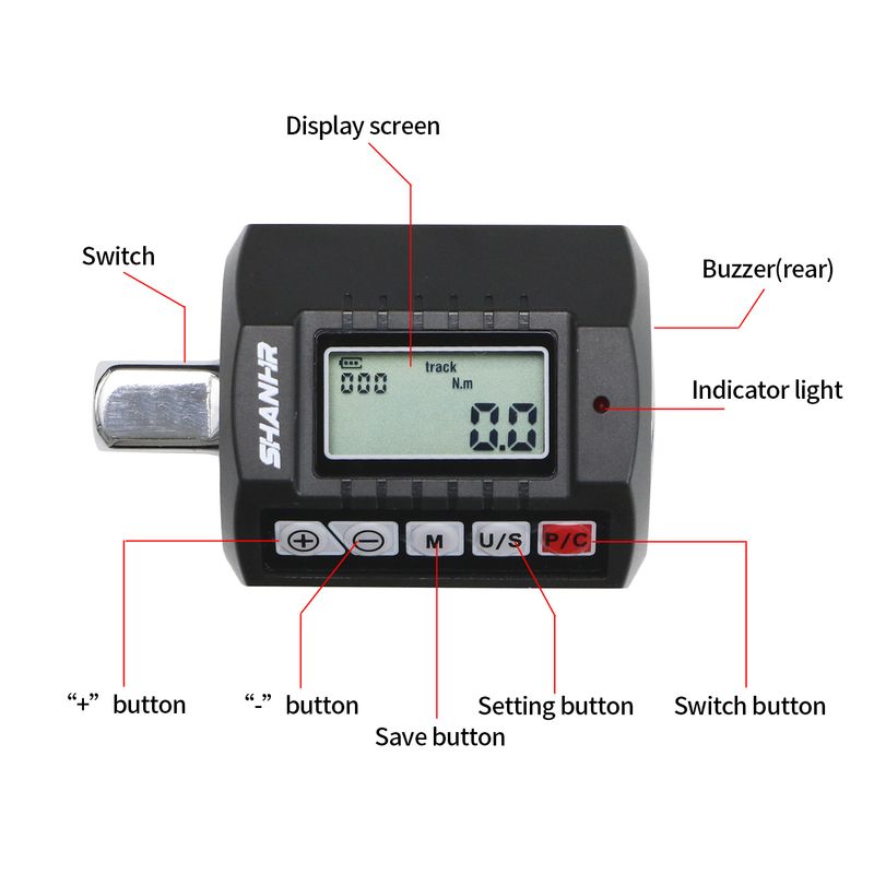 2. Four kinds of torque units can be switched freely: kgf.cm, Nm, lbf.ft, lbf.in.