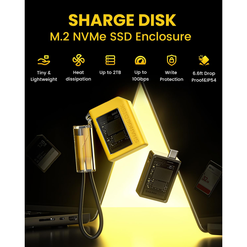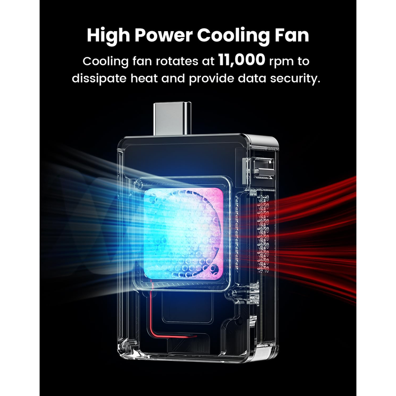 SSD overheating? Not with SHARGE Disk. Built-in 11,000rpm fan cools down your SSD by 20°C