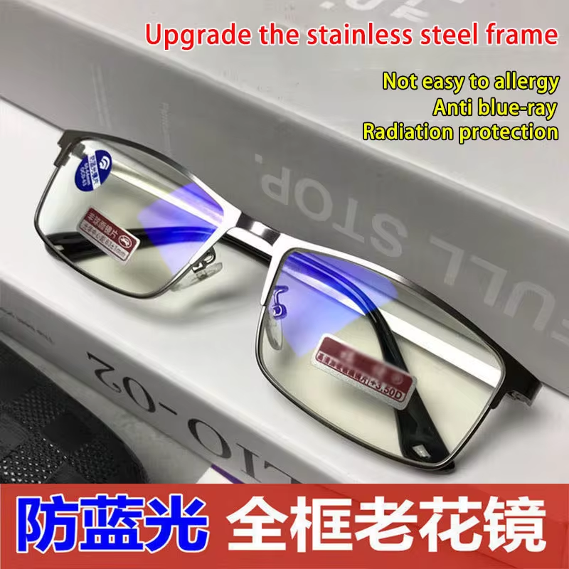 Shata Stainless Steel Frame Anti Blue Light Presbyopic Glasses For Business, Middle-aged And Elderly High-end Men And Women