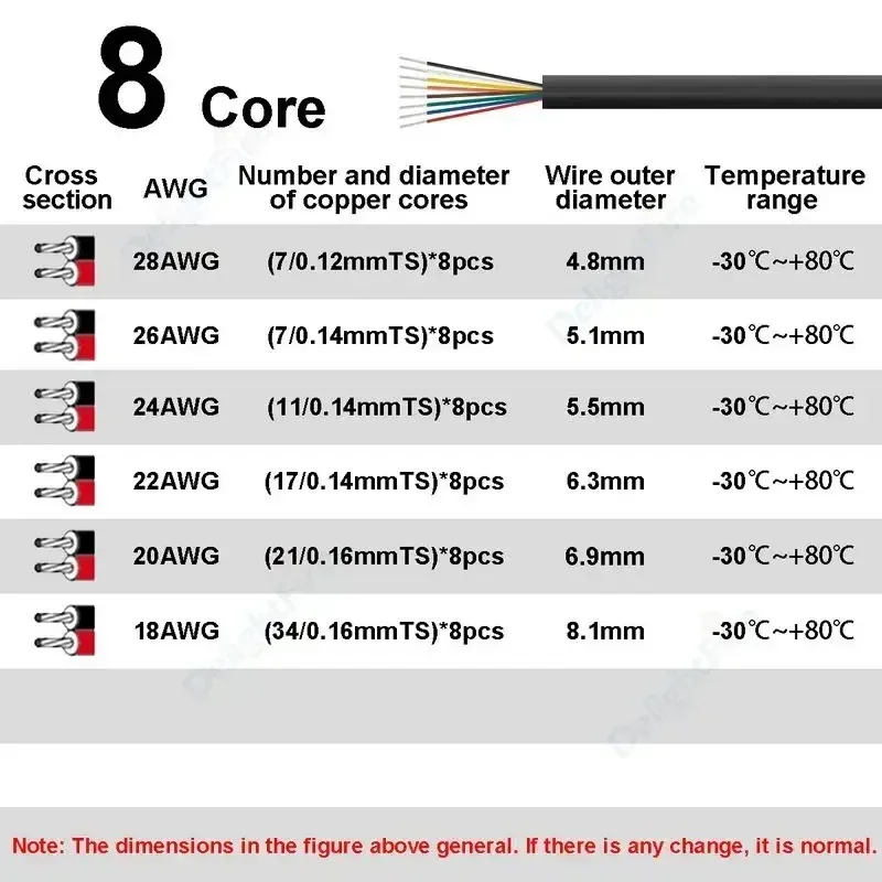 • Cable type: 28AWG/26AWG / 24AWG / 22AWG / 20AWG / 18AWG  80C 300V
