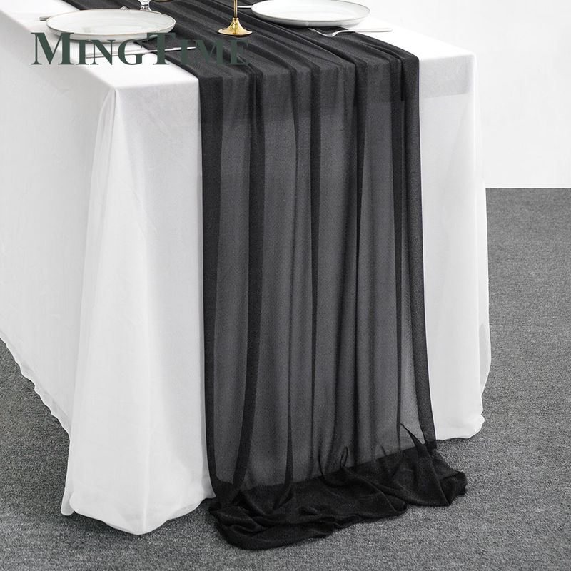 Sheer Chiffon Luxury Solid Colorful Table Runner Blue Rustic Boho Wedding Party Bridal Shower Birthday Home Christmas Decoration