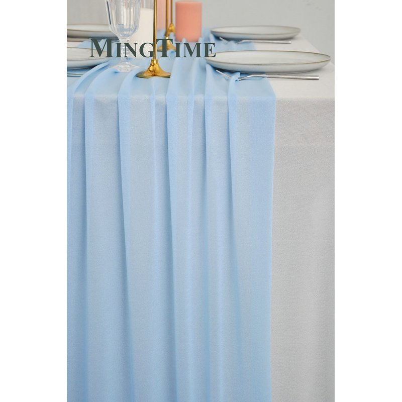 Sheer Chiffon Luxury Solid Colorful Table Runner Blue Rustic Boho Wedding Party Bridal Shower Birthday Home Christmas Decoration