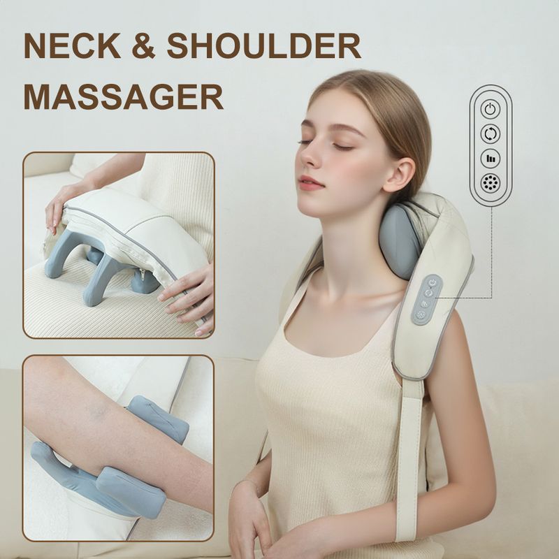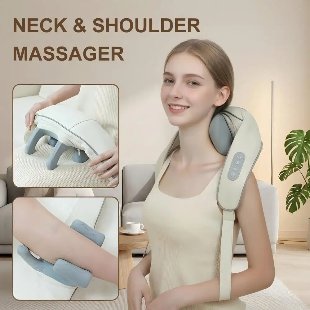 Shiatsu Neck Shoulder Massager Deep Tissue Shawl Kneading Spine Back Muscle Relaxer for Car Home Use Trapezius Neck Massager