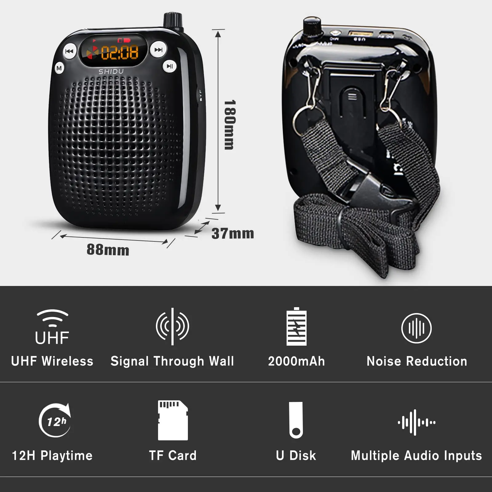 SHIDU10W Portable Bluetooth Wireless Voice Amplifier for Teachers with UHF Microphone AUX Audio Hi Fi Original Sound Speakers