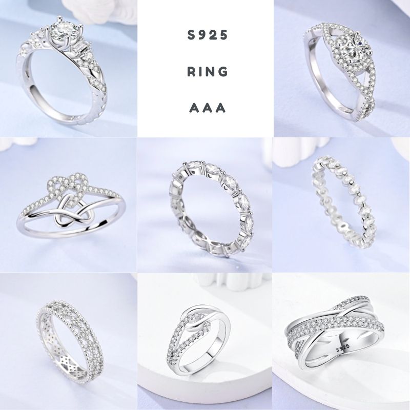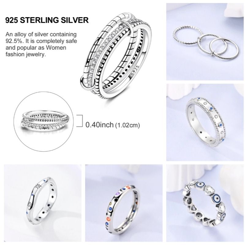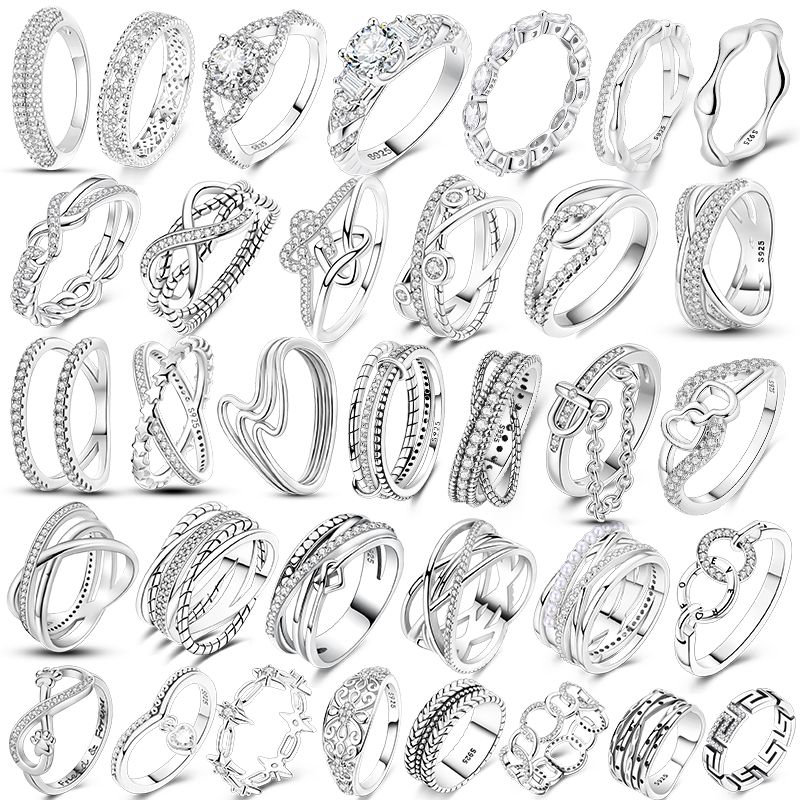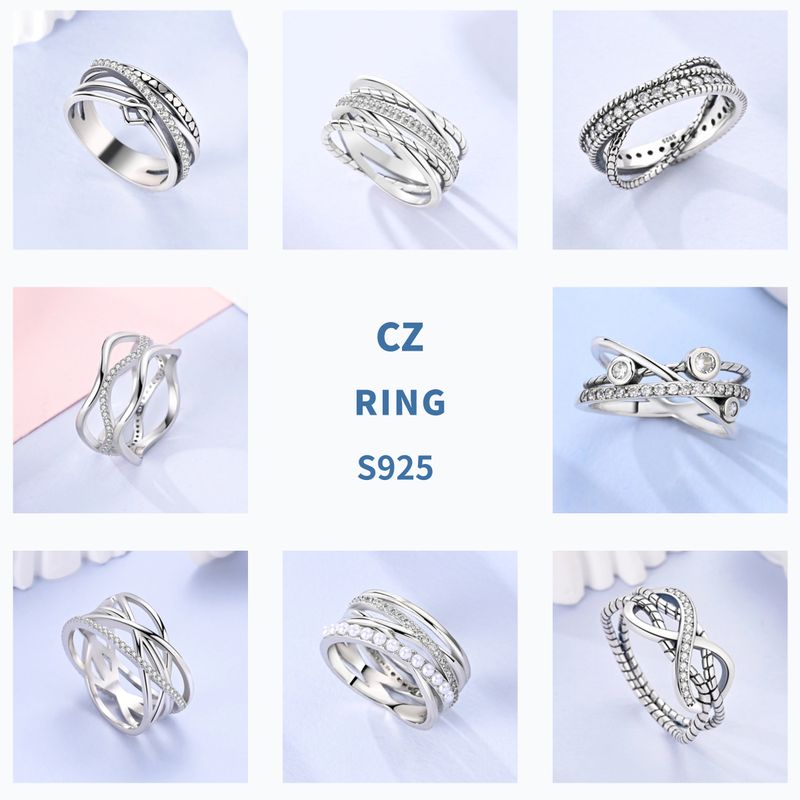 Shine Zircon Ring 925 Silver Original Stone Multi Layer Simple Infinitely Wide Rings For Women FineJewelry Wedding Party Gift