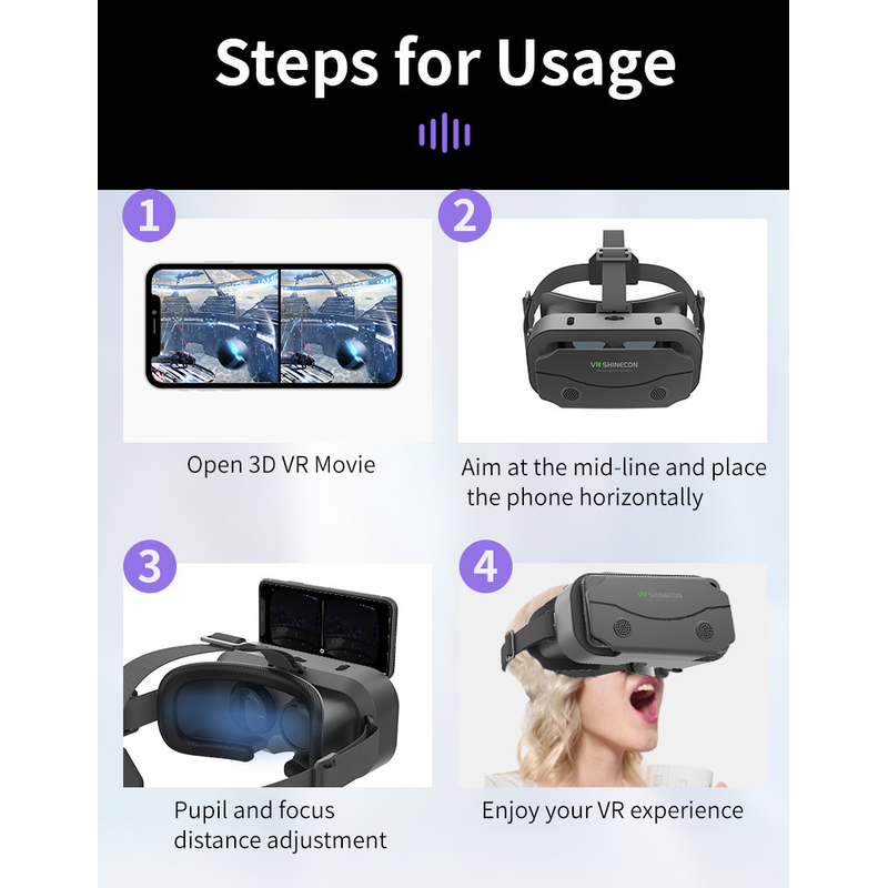 Virtual Reality Glasses have 3 adjustable headbands to keep you cool, have strong quality, and have a fit-for-wear design. Bring you a good experience.