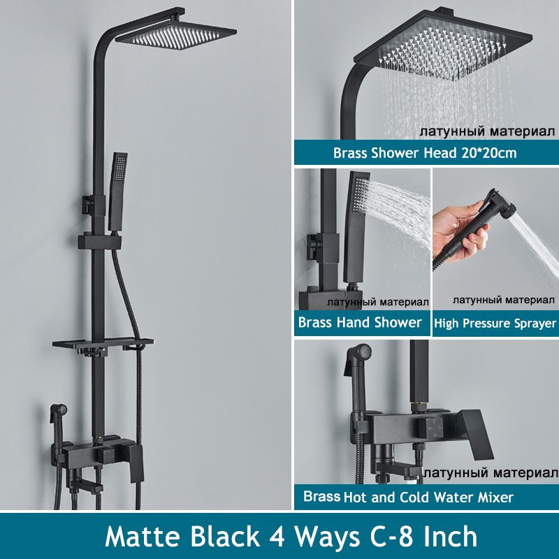 Shinesia Black/Chrome Bathroom Shower System Set Rainfall Shower Faucet Mixer For Bath Bathroom Tap Hot Cold Water 3 Or 4 Ways