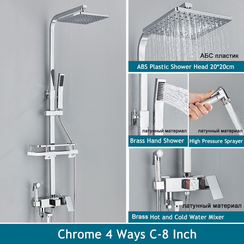 Shinesia Black/Chrome Bathroom Shower System Set Rainfall Shower Faucet Mixer For Bath Bathroom Tap Hot Cold Water 3 Or 4 Ways