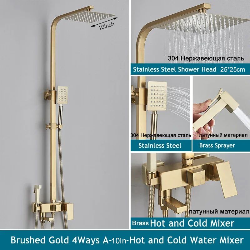 Shinesia Black/Chrome Bathroom Shower System Set Rainfall Shower Faucet Mixer For Bath Bathroom Tap Hot Cold Water 3 Or 4 Ways
