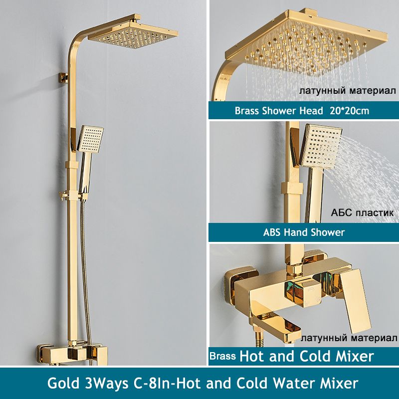 Shinesia Black/Chrome Bathroom Shower System Set Rainfall Shower Faucet Mixer For Bath Bathroom Tap Hot Cold Water 3 Or 4 Ways