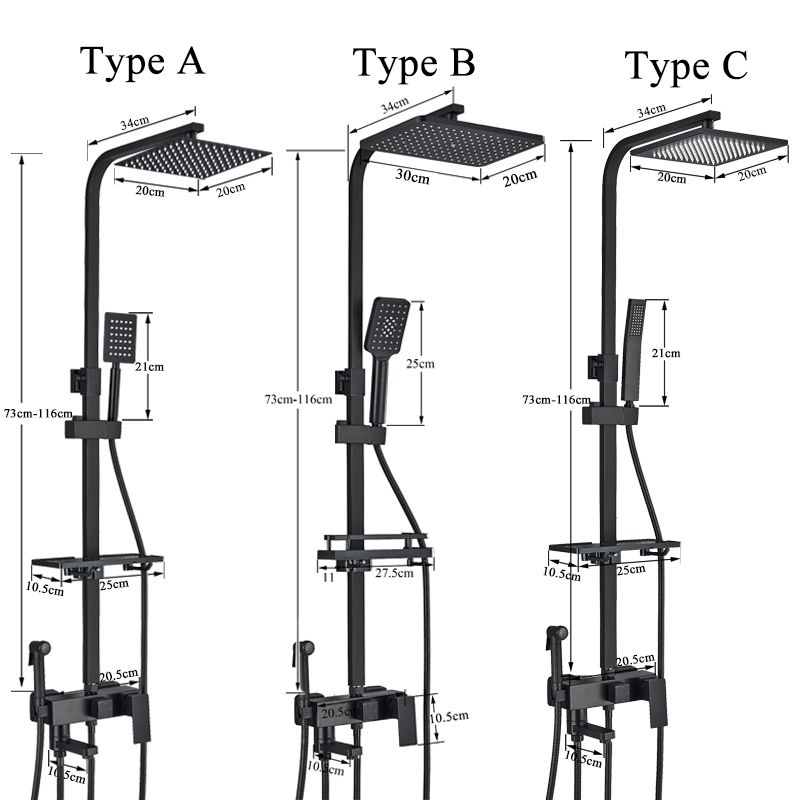 Shinesia Black/Chrome Bathroom Shower System Set Rainfall Shower Faucet Mixer For Bath Bathroom Tap Hot Cold Water 3 Or 4 Ways