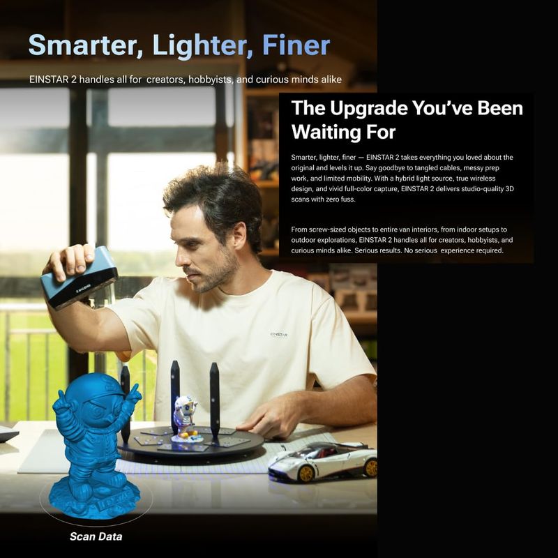 SHINING 3D Scanner EINSTAR 2 Wireless 3D Scan High Accuracy Support Marker-Free Scanning 17 Blue Laser Line/NIR Light