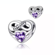 Shining zircon love heart Month Birthstone Bead Charms 925 Silver Fits Original 3mm Women Bracelet Pendant DIY Fine Jewelry Gift