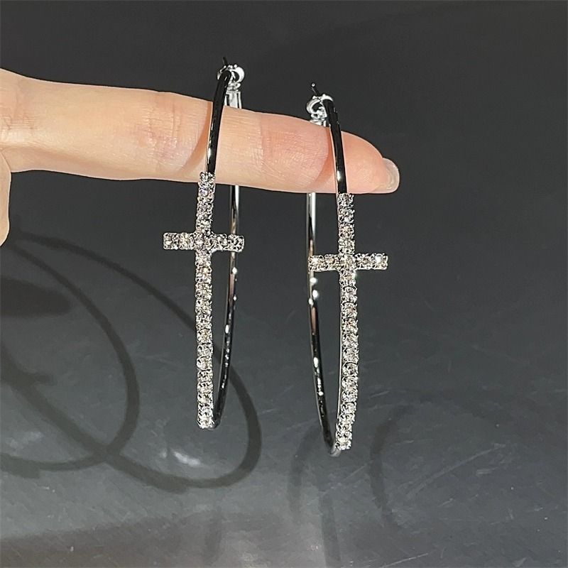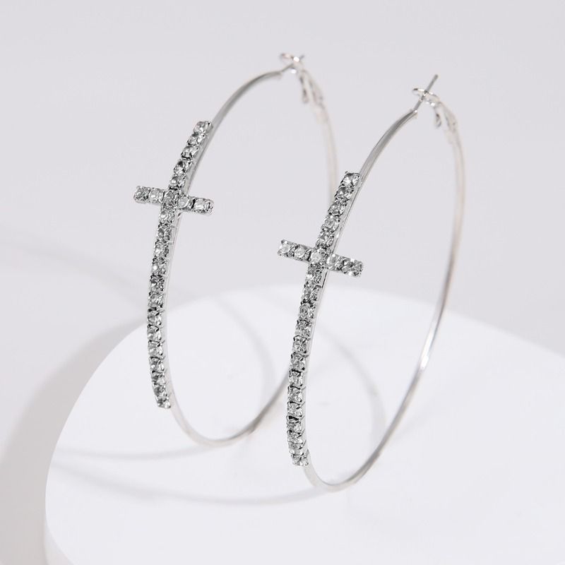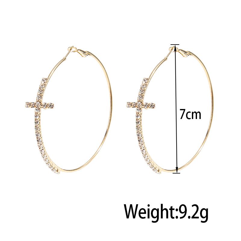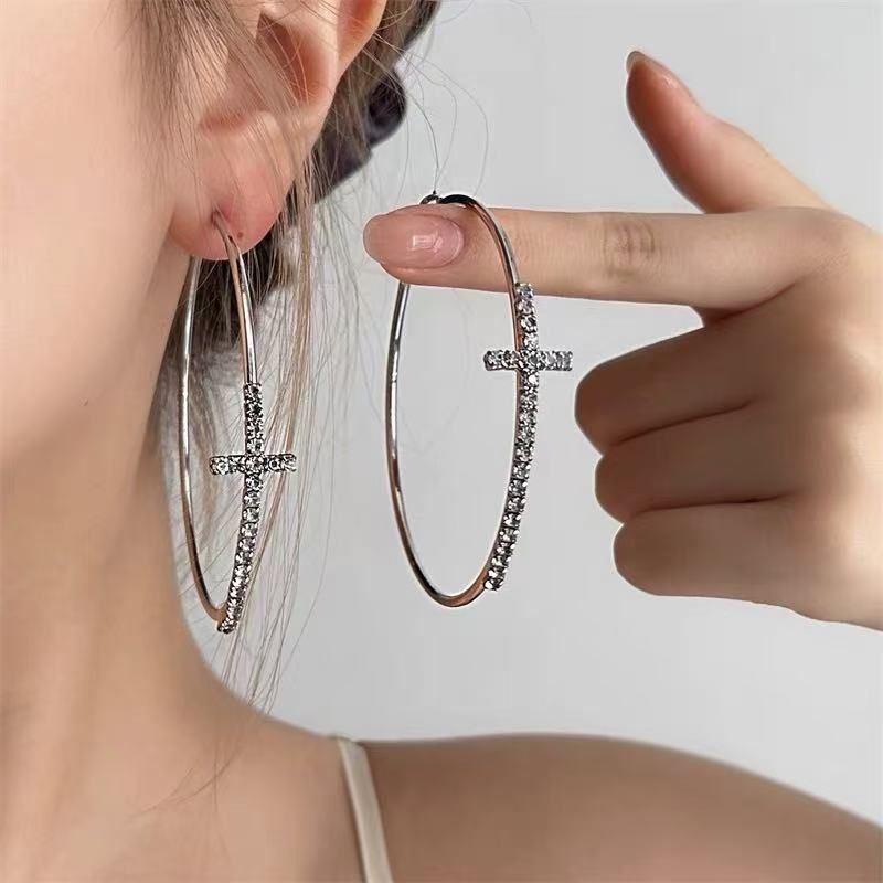 Shiny Big Circel Cross Hoop Earrings for Women Exquisite Rhinestones Ear Buckles Earrings High-end Geometric Ear Rings Jewelry