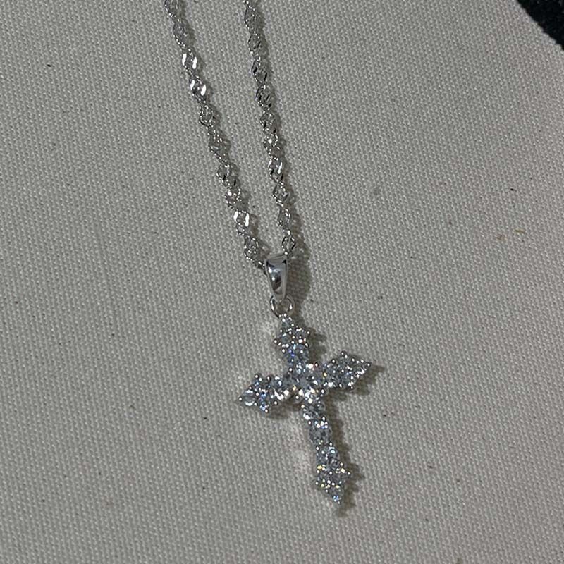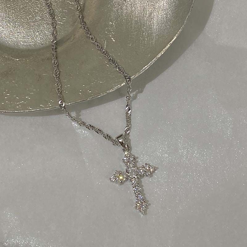 Shiny Crystal Zircon Cross Pendant Necklace for Women Girls Punk Silver Color Thin Chain Necklace Party Jewelry Birthday Gift