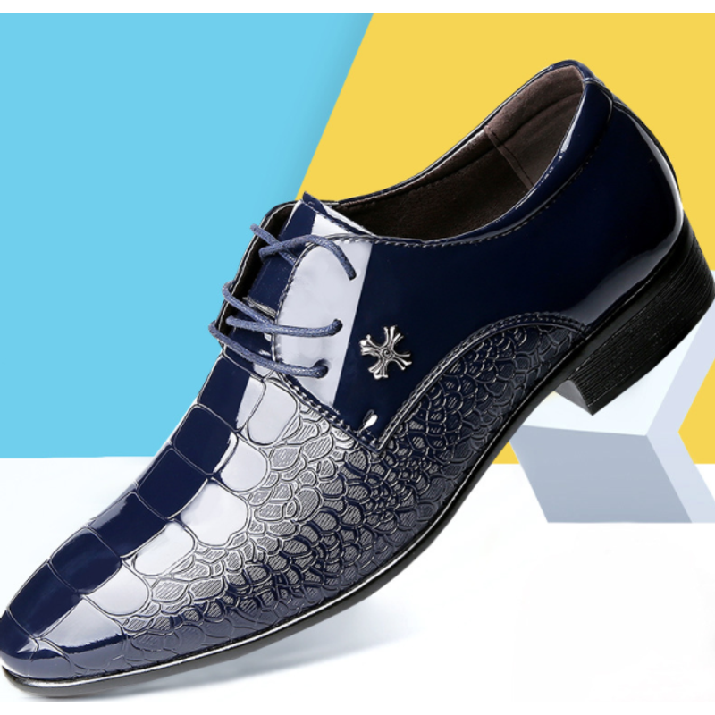 Shiny Lace-Up Single Shoes Fashion Dress Shoes Yellow brown Size40