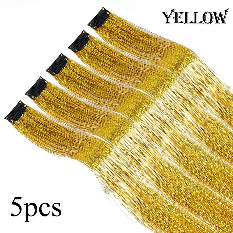 Shiny Sparkle Hair Extension Clip In Hair Tinsel Glitter Fairy Hair Tinsel Kit Heat Resistant 5Pcs Hair Streak Synthetic Hair