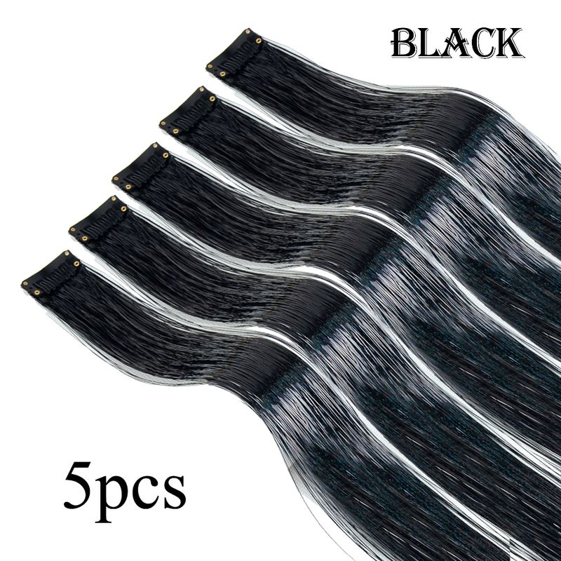 Shiny Sparkle Hair Extension Clip In Hair Tinsel Glitter Fairy Hair Tinsel Kit Heat Resistant 5Pcs Hair Streak Synthetic Hair