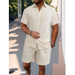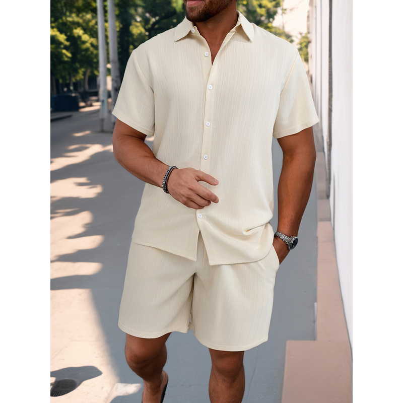 Shirt Casual Loose Short Sleeves Trousers Beach Suit Beige S