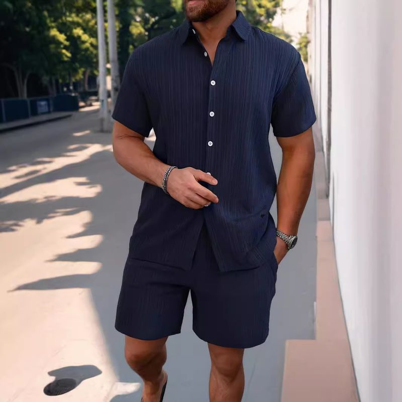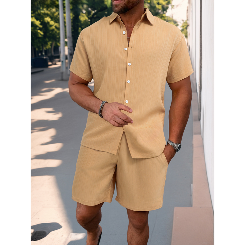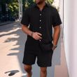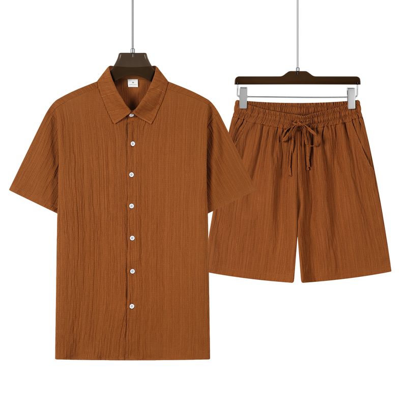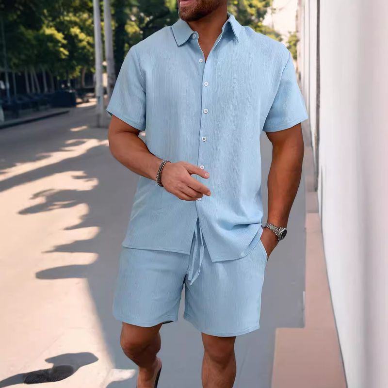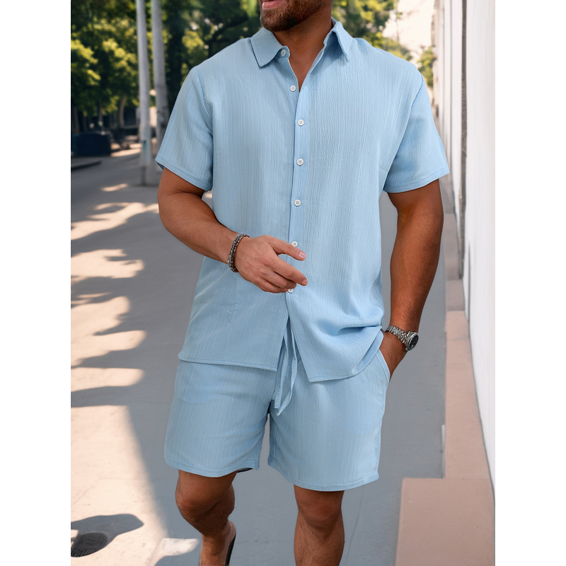 Shirt Casual Loose Short Sleeves Trousers Beach Suit Light Blue S