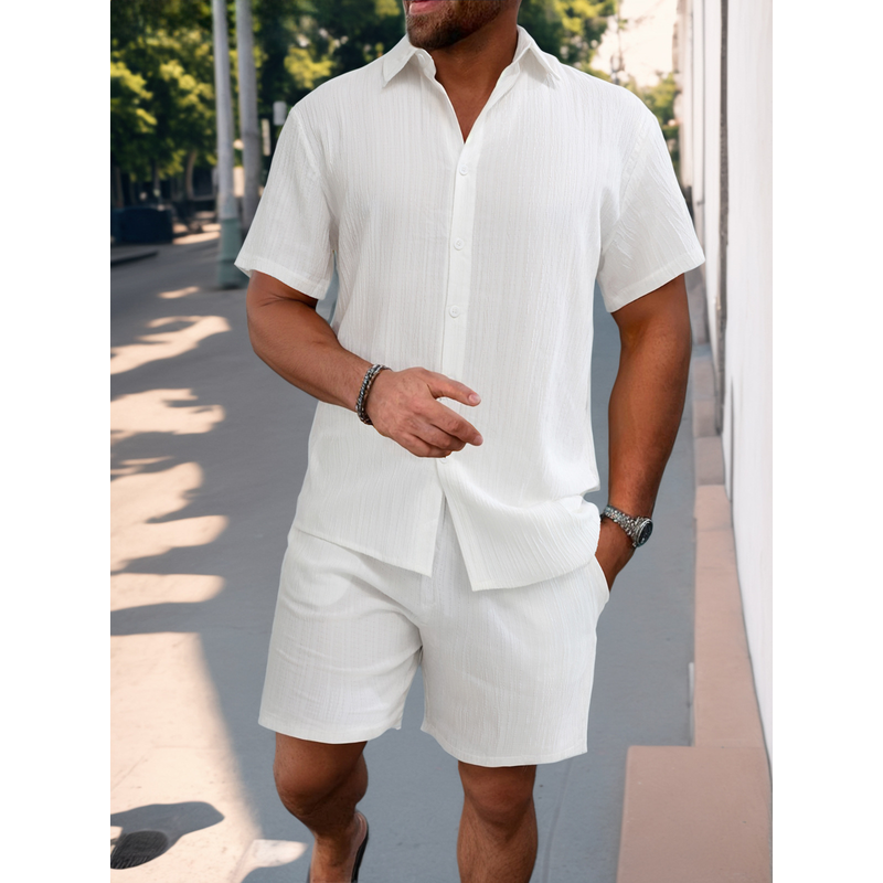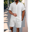 Shirt Casual Loose Short Sleeves Trousers Beach Suit White L