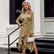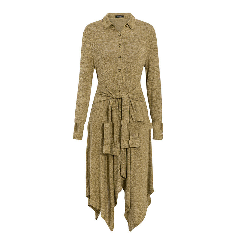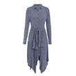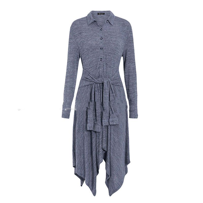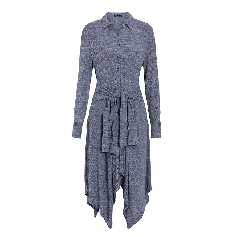 Shirt collar long sleeve casual dress Blue S