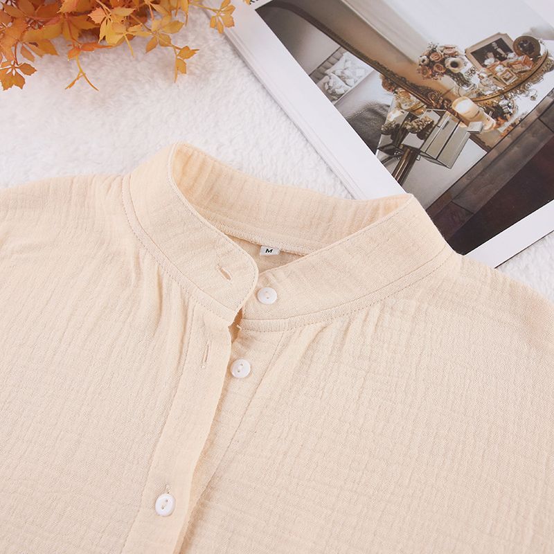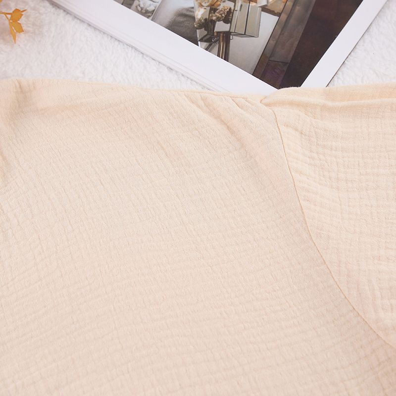 Shirt Double-layer Crepe Loose Long Sleeve Trousers Suit Apricot S