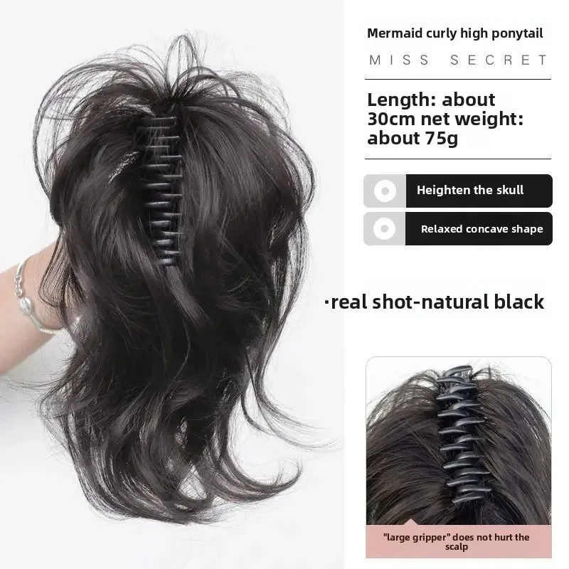 Short Curly Synthetic Claw Clip Ponytail Hair Extensions For Women High Top Bun Ponytail Hairpiece High Temperature Fiber Tail