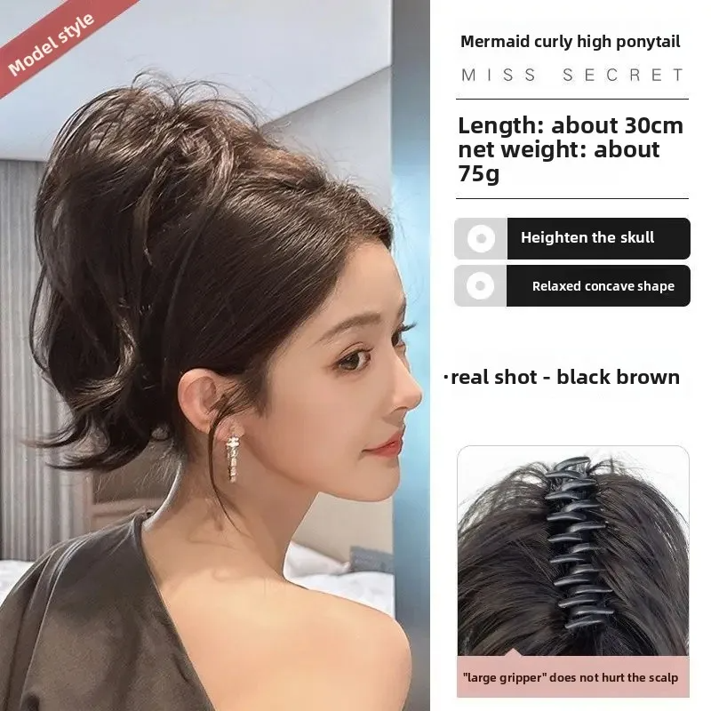 Short Curly Synthetic Claw Clip Ponytail Hair Extensions For Women High Top Bun Ponytail Hairpiece High Temperature Fiber Tail