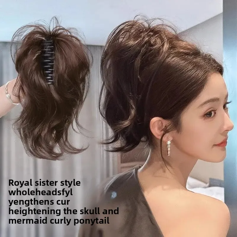 Short Curly Synthetic Claw Clip Ponytail Hair Extensions For Women High Top Bun Ponytail Hairpiece High Temperature Fiber Tail