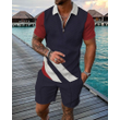 Short Sleeve Casual Striped Zip Polo Shirt Yellow Duck 2XL