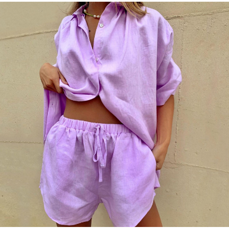 Short Sleeve Shirt Shorts Casual Suit Yellow S