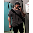 Short Sleeved Men's Fitness Print Collar Damaged Coffee 2XL