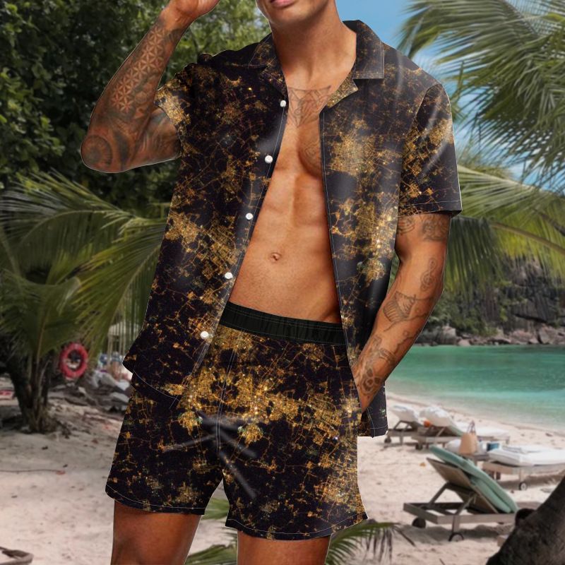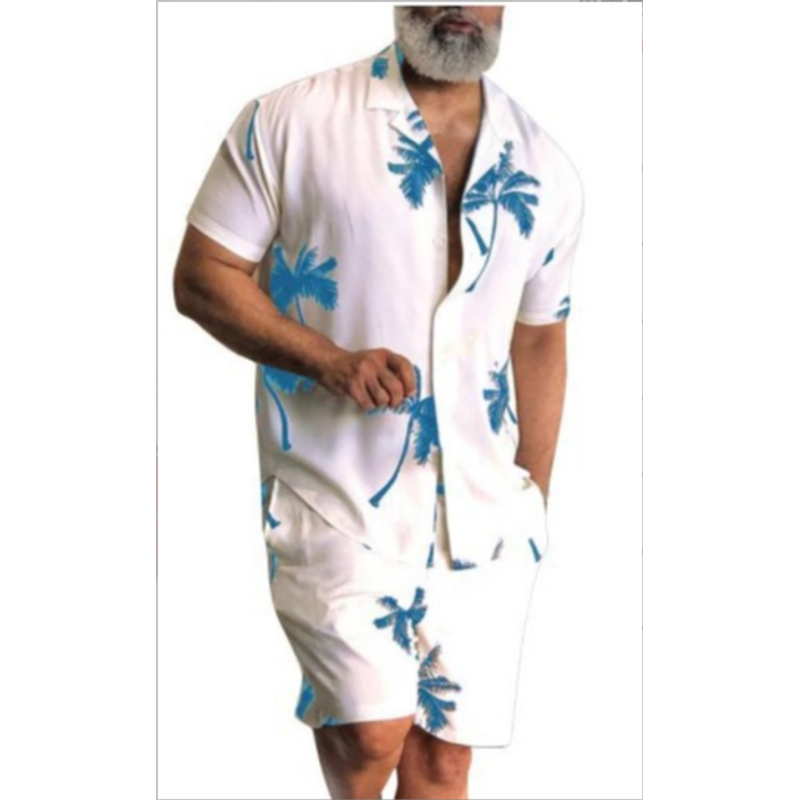 Short Sleeved Shirt Men's Casual Trendy Suit Blue L