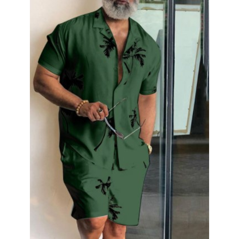 Short Sleeved Shirt Men's Casual Trendy Suit Green M