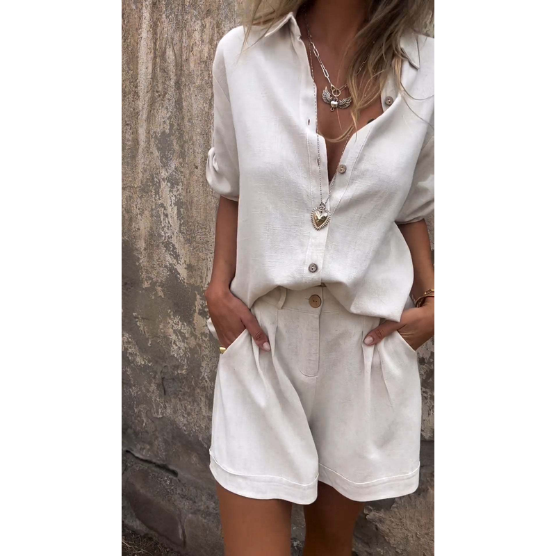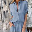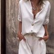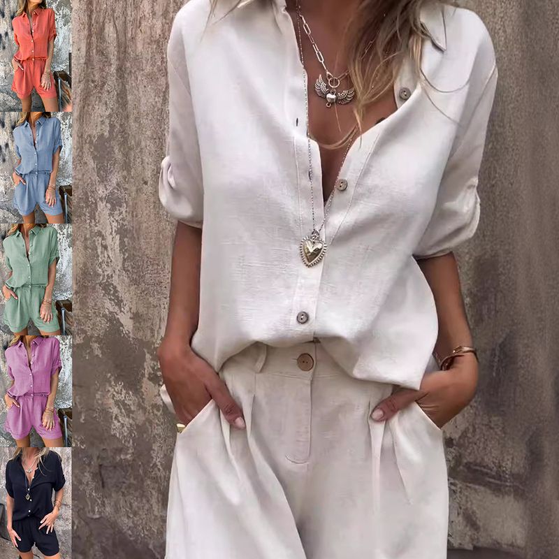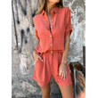 Short-sleeved Suits Fashion Lapel Button Shirt Top And Pocket Shorts Women's Clothing Orange Red XXXL
