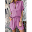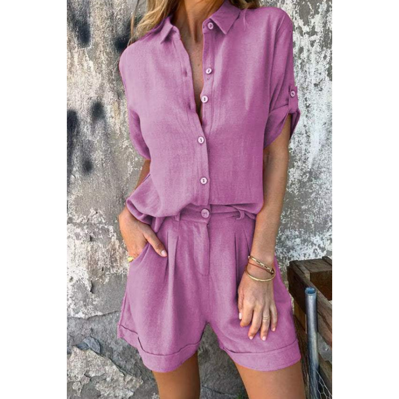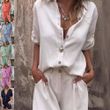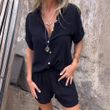 Short-sleeved Suits Fashion Lapel Button Shirt Top And Pocket Shorts Women's Clothing White XL