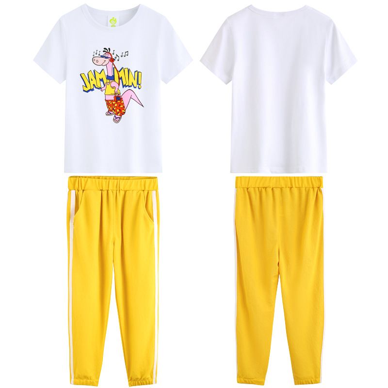 Short-Sleeved T-Shirt And Trousers Suit Fashion Casual Sports Couple Wear Yellow Child160