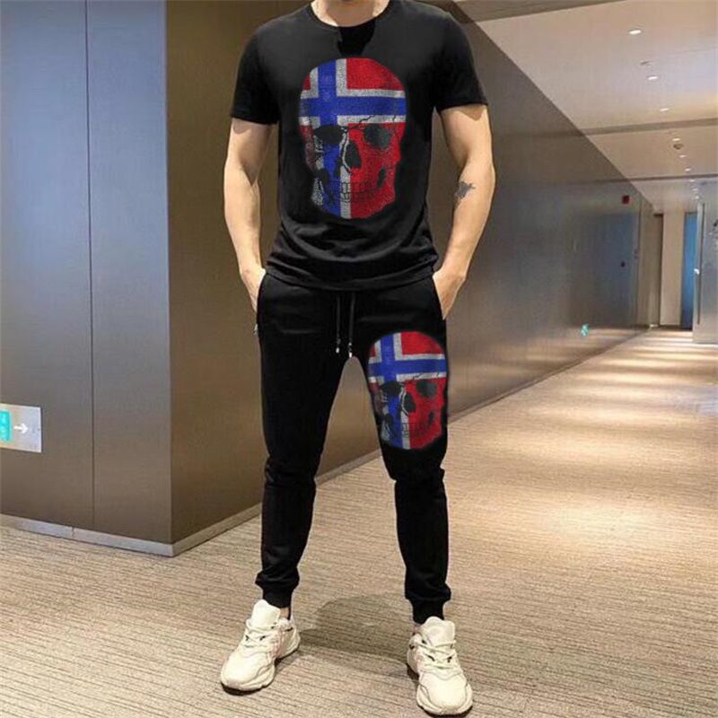 Short-sleeved Trousers Casual Fashion Hot Drilling Suit Red 2XL