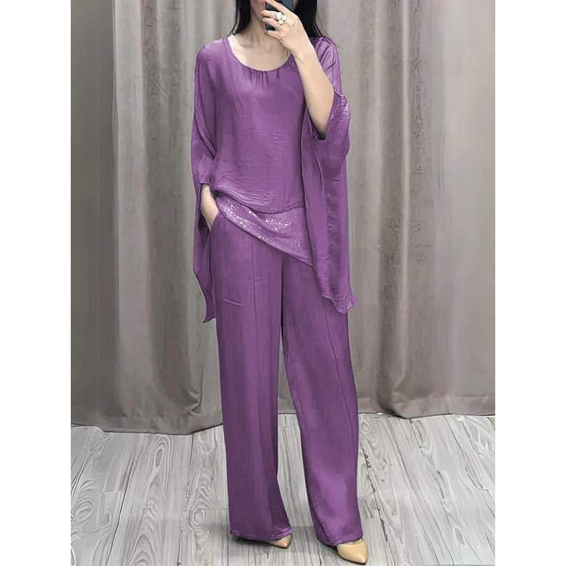 Shoulder Short-sleeved Trousers Casual Suit Purple 4XL