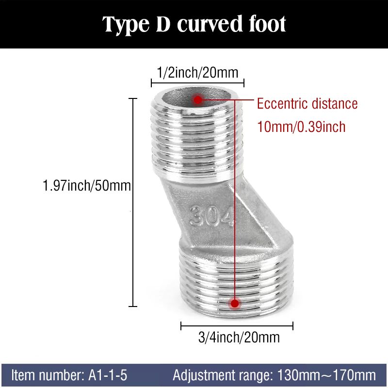 Shower faucet accessories: Extended and thickened elbow bends,curved pipes, and faucet joints for showerheads.The faucet is bent