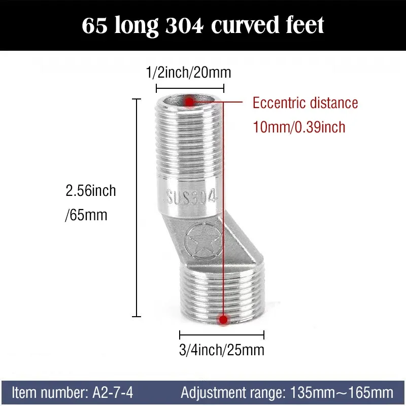 Shower faucet accessories: Extended and thickened elbow bends,curved pipes, and faucet joints for showerheads.The faucet is bent