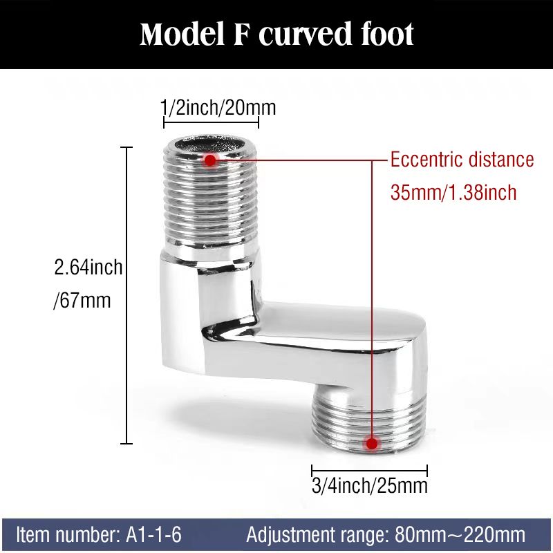 Shower faucet accessories: Extended and thickened elbow bends,curved pipes, and faucet joints for showerheads.The faucet is bent