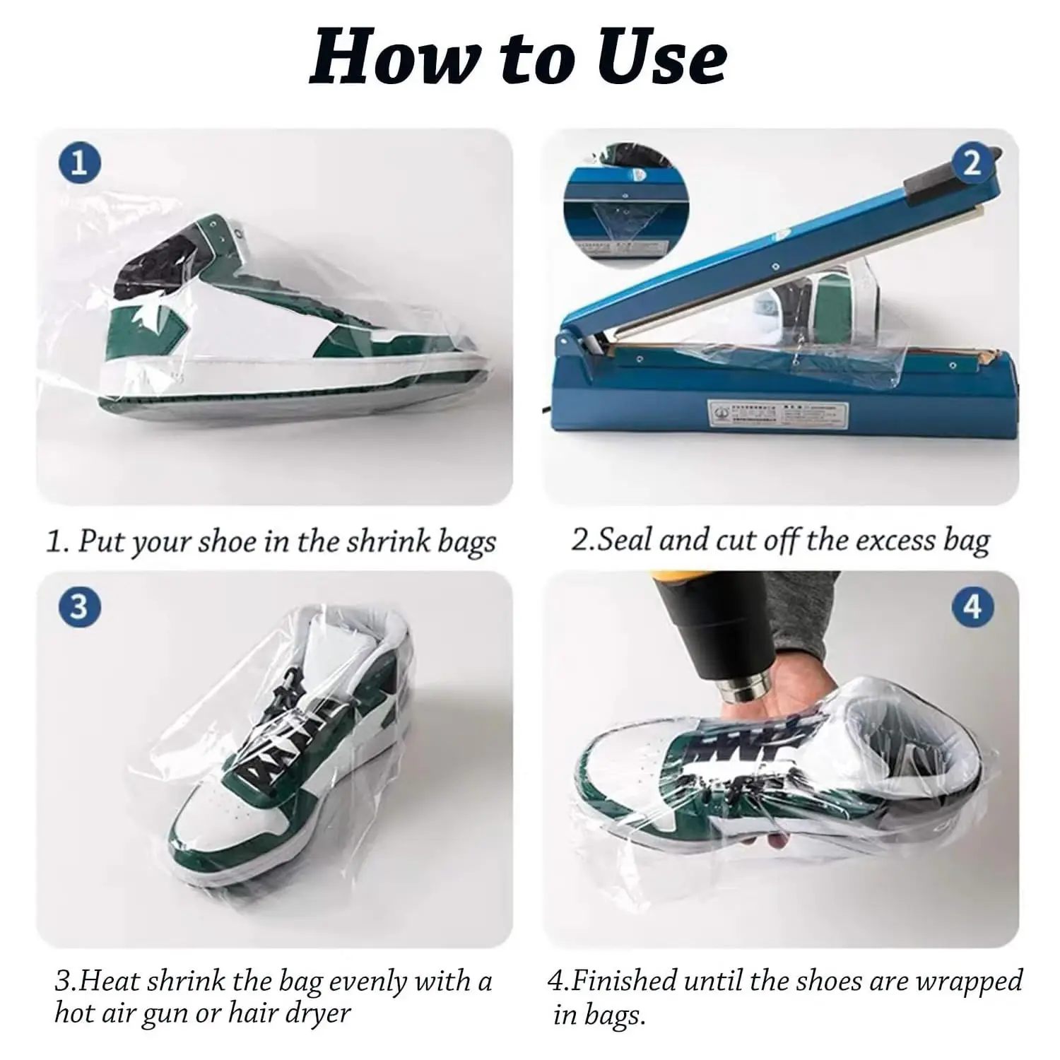 Shrink Wrap Bags PVC Clear Heat Shrink Film Bag for Shoes Books Soap DIY Crafts Waterproof Mould Proof Heat Hair Dryer Sealing