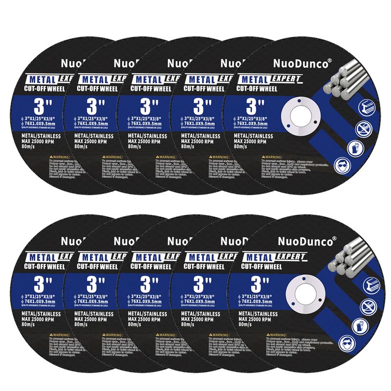 The 3 Inch Cut Off Wheel features a metal center and design of 1mm thickness cutting off wheels provides fast, precise, and clean cutting performance with minimal burrs and material waste. The cutting disc for metal & stainless steel meet ANSI safety requirements.And operating speeds up to 25000 RPM and 80M/S.