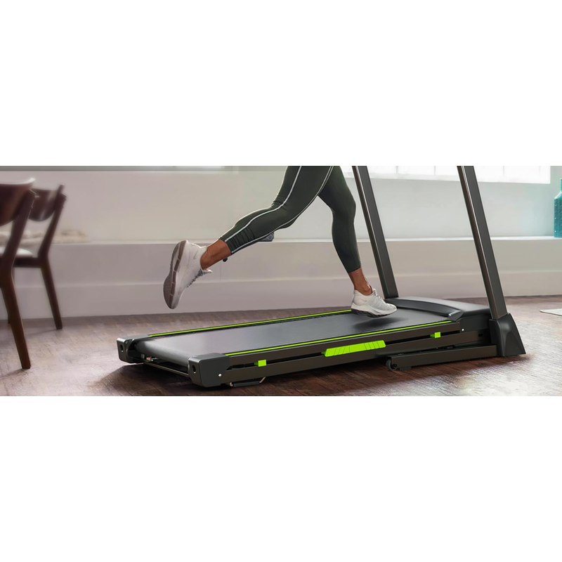 【Hydraulic-Folding Systerm】This portable treadmill boasts a compact footprint and Hydraulic-Folding Systerm design with convenient transportation wheels to move around without hassle. You can either store it in your living room, study, any small corner of home.